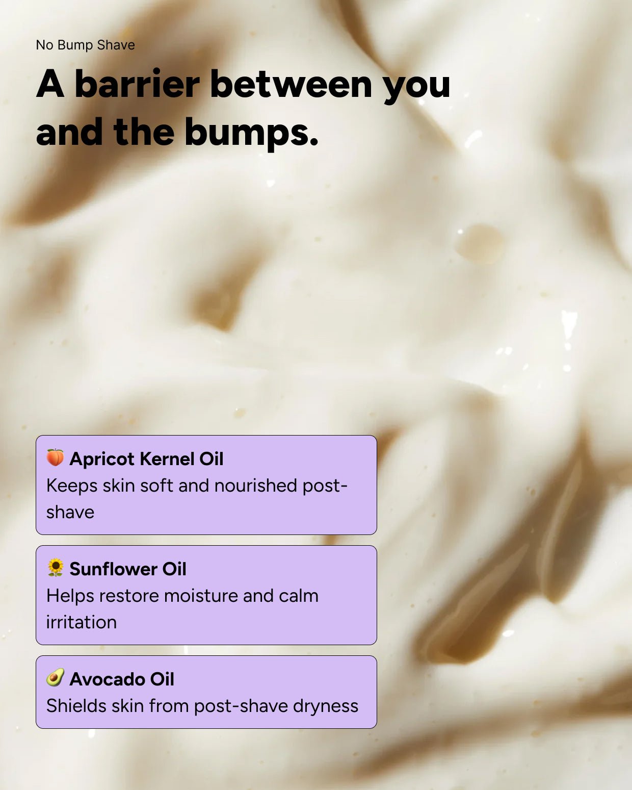 Here’s the thing, shaving doesn’t need to come with anxiety, and you don’t have to give it up for irritation-free skin, either. NBS helps to remove your hair effortlessly while leaving you smooth, bump, and ingrown-free skin, e-v-e-r-y-t-i-m-e. Enriched with apricot and avocado oils, it soothes and hydrates for a flawless, irritation-free finish.