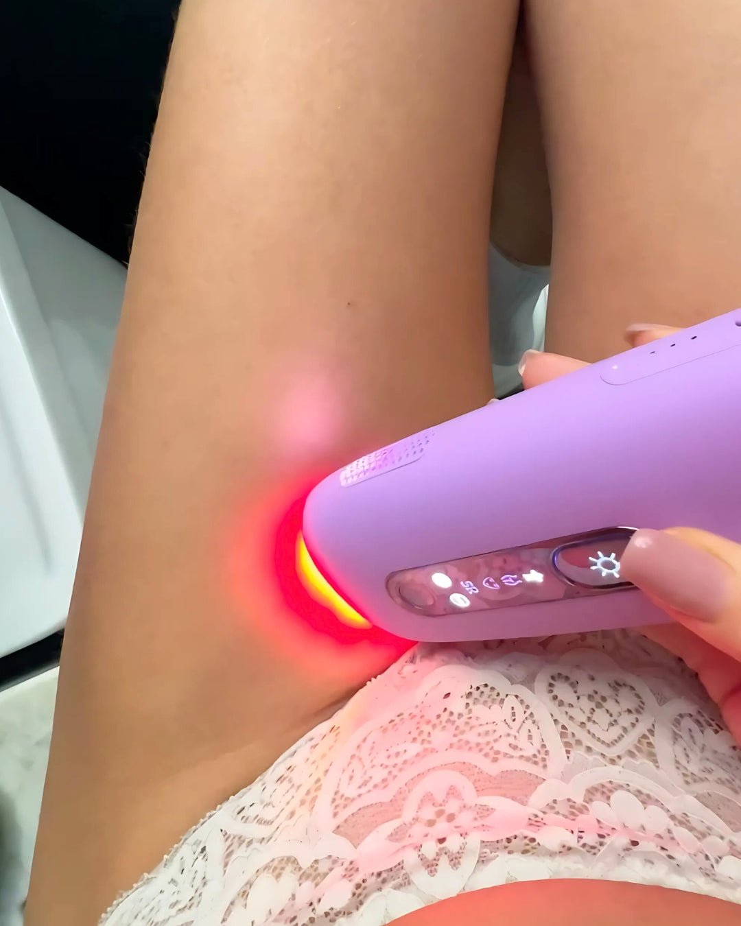 Yes — our IPL is designed for delicate zones like the bikini line and outer pubic area, where hair naturally grows on the skin’s surface. ✨